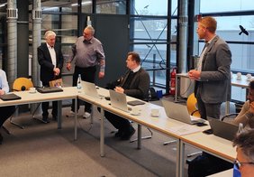 Nach Verabschiedung der Ausschussmitglieder bot sich beim Verlassen der Experimentierhalle noch die gern genutzte Gelegenheit, Herrn Prof. Korkolis und seinem Team zu danken.