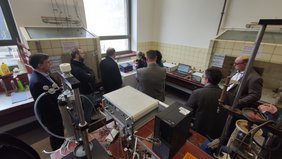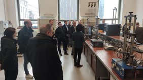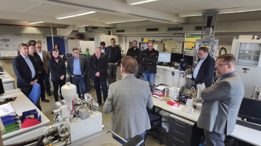Nach Vorstellung des Institutes durch Herrn Dr. Gramlich wurden einige Projekte präsentiert. Zunächst stand der aus gemeinsamen Arbeiten entstandene lufthärtenden Stahl (LHD) an sich, aber auch als Nitrierstahl (LHN) und im Einsatz bei einer Hohlwelle für Windenergieanlagen (HoRo-LHD) im Fokus. In weiteren Berichten ging es um das Wasserstofflabor am IEHK, die Ermittlung der Ermüdung bei sehr hohen Zyklen und die Bedeutung von Datenbanken für die Werkstoffforschung. Beim Institutsrundgang konnte Herr Dr. Heßling und die an den Stationen jeweils zuständigen Mitarbeitenden des IEHK Herrn Dr. Gramlich tatkräftig unterstützen.