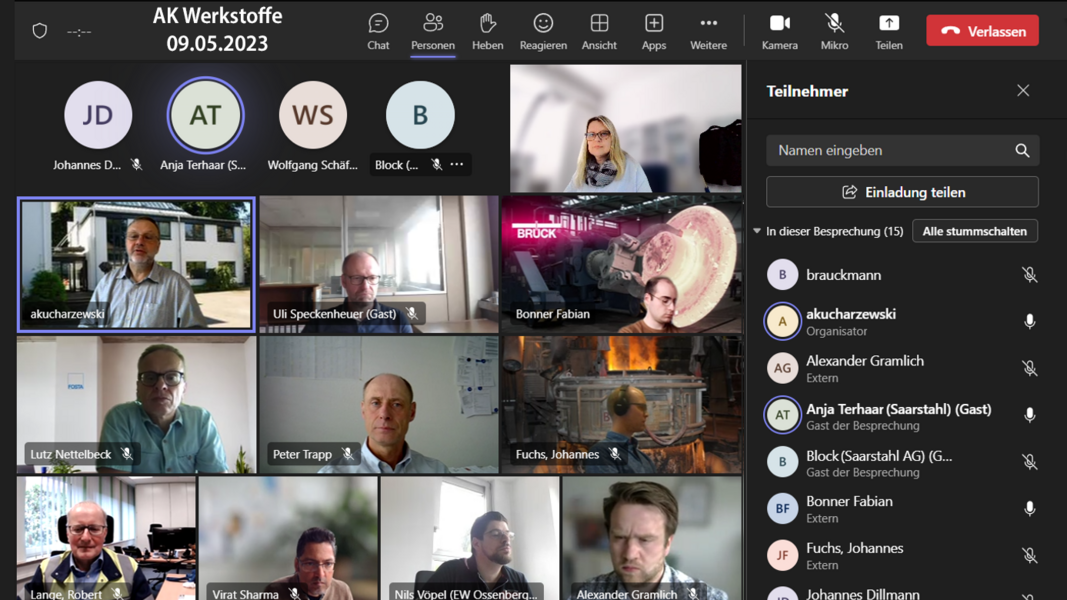 Den Anfang der in diesem Beitrag berücksichtigten Treffen macht jenes des Arbeitskreises Werkstoffe, welcher am 9. Mai erneut im Rahmen einer Webkonferenz zusammengekommen war. Die Normenarbeit im DIN-Normenausschuss „Metallographische Prüfverfahren" stand auf der Tagesordnung und die Forschungslandschaft rund um den LHD-Schmiedestahl wurde vertieft. Peter Trapp stellte die KÜNNE Qualitätsstahl vor und für das Thema „Lösungsbehandeln bzw. Abschrecken aus der Umformwärme bei Austenitischen Stählen bei größeren Bauteilen“ wurde ein gesondertes Treffen unter Leitung von Herrn Dr. Gramlich (IEHK) verabredet.