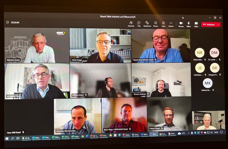 Ein Tagesordnungspunkt der Round Table vom 7. Dezember 2022 war die „Forschungsroadmap Massivumformung“. Dazu stellten zunächst die beteiligten Hochschulinstitute die Schwerpunkte ihrer aktuellen und geplanten Forschungsaktivitäten vor. Dann präsentierten die Industrievertreter den Entwurf einer Forschungsroadmap, der in zwei Workshops unter Beteiligung des IMU-Ausschusses Forschung und Technik und des GCFG-Forschungsbeirates erarbeitet worden war. In einer lebendigen Diskussion wurden die Ansätze diskutiert und eine weitere gemeinsame Verfolgung vereinbart.