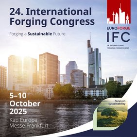 Vom 5. bis 10. Oktober 2025 trifft sich die internationale Schmiedeindustrie zum 24. International Forging Congress (IFC 2025) im Kap Europa, Messe Frankfurt, Deutschland.