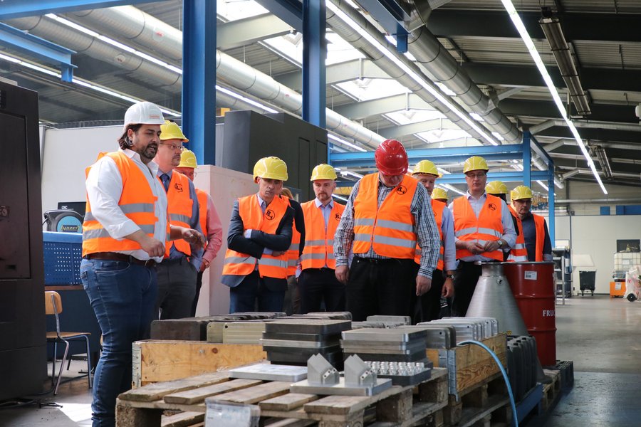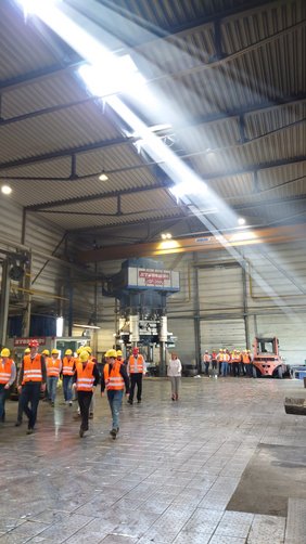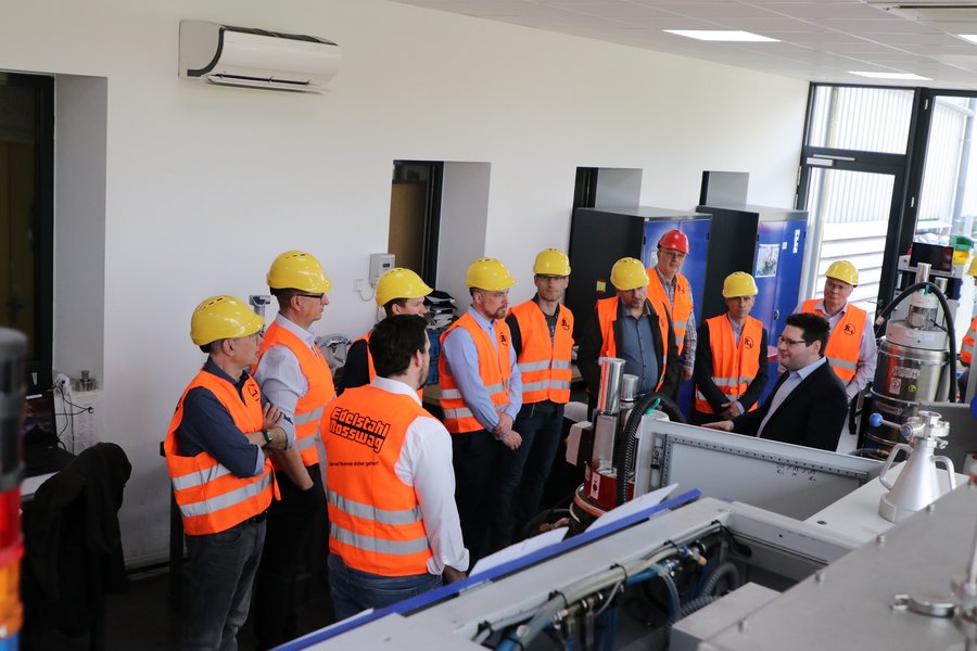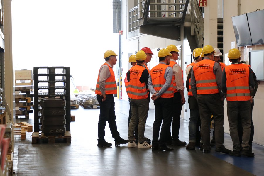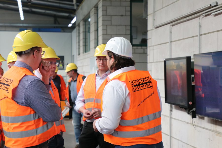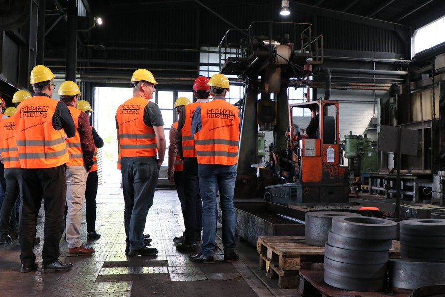 Mit Folien und schließlich einer Betriebsbesichtigung stellten die Herren Dr.-Ing. Sven Donisi, Christoph Klameth, Jan Walczak und weitere Mitarbeitende der Edelstahl Rosswag GmbH das sehr agile Unternehmen vor.