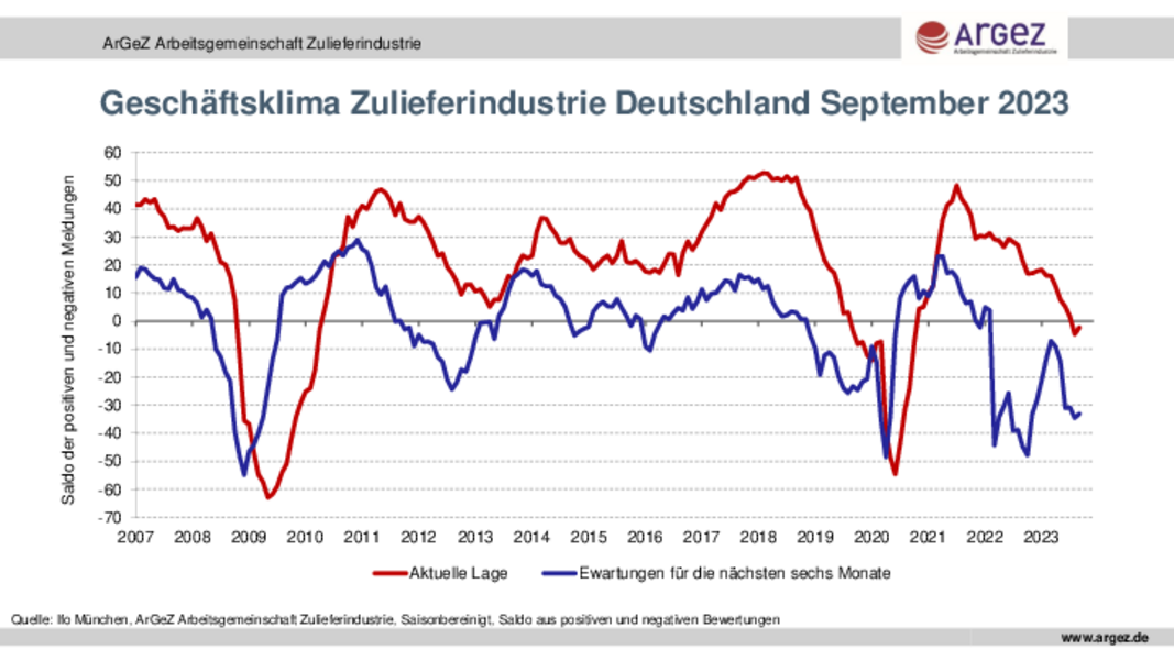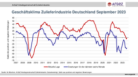 Der Geschäftsklimaindex Zulieferindustrie wird von der Arbeitsgemeinschaft Zulieferindustrie ArGeZ in Zusammenarbeit mit dem Ifo-Institut, München, ermittelt. Er beruht auf der Befragung von rund 600 Unternehmen und deckt die in der Arbeitsgemeinschaft Zulieferindustrie zusammengeschlossenen Branchen Gießerei-Industrie, Aluminiumindustrie, Kunststoffverarbeitung, Stahl- und Metallverarbeitung, NE-Metall-Industrie, Kautschukindustrie sowie Technische Textilien ab. Der Chart, mit korrigierten saisonbereinigten Daten, steht zum Download unter www.argez.de zur Verfügung.