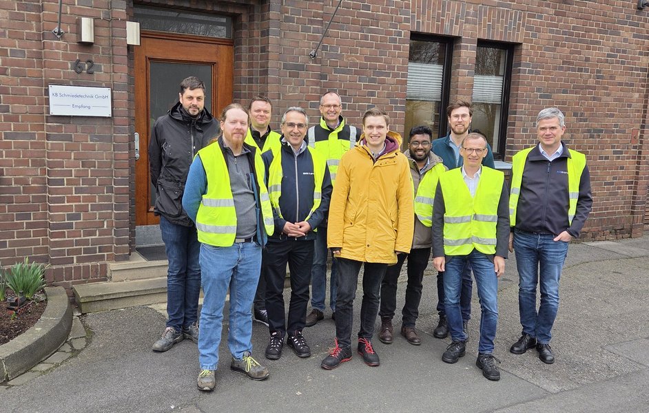 Im Sitzungsraum bei der KB Schmiedetechnik in Hagen erfolgte nach einer kurzen Begrüßung, den obligatorischen kartellrechtlichen Hinweisen und einem Blick auf die offenen Punkte gemäß Maßnahmenplan die Vorstellung der aktuellen Ergebnisse durch die beiden Bearbeiter Marc Warnecke (IPH - Institut für Integrierte Produktion Hannover GmbH) und Patrick Kramer (Fachhochschule Südwestfalen, Labor für Massivumformung).
