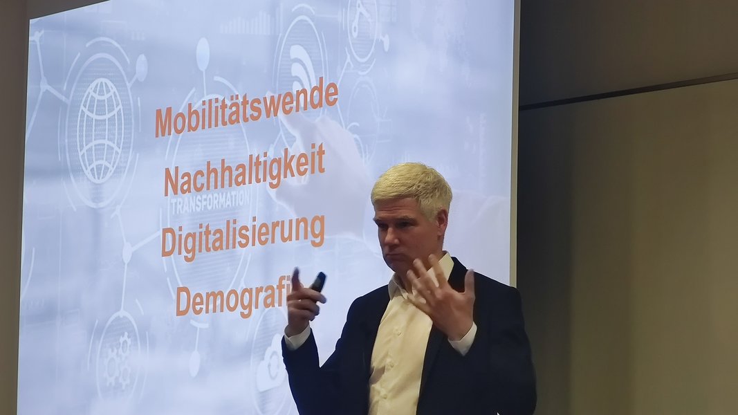 In seinem Vortrag „Die deutsche Massivumformung – Wege zum nachhaltigen Erfolg“ zu Beginn des Massivumform-Tages analysierte IMU-Geschäftsführer Tobias Hain die aktuellen Anforderungen der Unternehmen der Branche aus der industriellen Transformation sowie der Regulatorik.