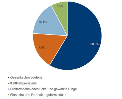 Laut Statistischem Bundesamt lag das Produktionsvolumen der deutschen Unternehmen der Massivumformung im Jahr 2023 bei knapp 1,9 Mio. Tonnen. Das entspricht einem Produktionswert von 7,9 Milliarden Euro. Die Tonnage verteilt sich auf die Herstellverfahren wie folgt (Angaben in %):