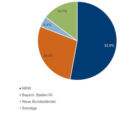 Fast zwei Drittel der Unternehmen der Massivumformung sind in Nordrhein-Westfalen angesiedelt. Weitere Regionale Schwerpunkte liegen in Bayern und Baden-Württemberg sowie in den östlichen Bundesländern.